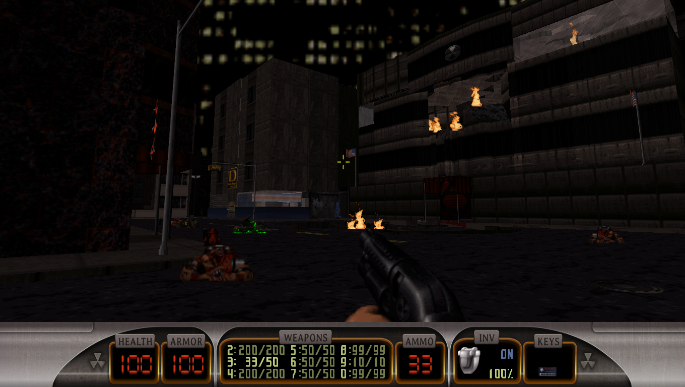 A map that takes place in a grungy city at night that has been taken over by aliens, with a Duke Nukem visits Baltimore type of feel. Duke plans to check in on his house he owns in the city but things are all wrong. I added a “Gun Crazy” building and a stripper place named after Duke Nukem Zero Hours “The Booby Trap” also The title of the map is based on Duke Nukem Zero Hours “Mean streets” level. But is not a remake in anyway. Hope you enjoy