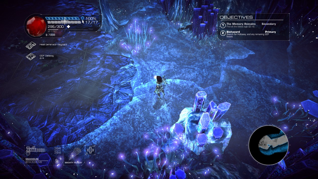 Gameplay: The gameplay just like the level design it changes up in each episode but it mostly consists of action, a shoot everything that moves type and for me that’s how I want my games yeah its not for everyone but the action is brilliant with blood, gore, bombing, shooting, punching, exploding, and slicing several different enemies. Upgrading your weapons combined with a lot of enemies and action calls for a fun and good time. But there is times where you will find your self exploring and even getting somewhat lost in these rather big maps. I think there were so many ways to continue in this game. One time your collecting crystals to open your door and next your finding/placing c4 explosives to continue. There are so many ways and they got pretty creative but not to hard. More creative then just a checkpoint system where you can’t backtrack. Here you can backtrack all you want, in fact you may have to sometimes. Especially doing the side missions that are in the game. I don’t think I could name all the progress methods maybe there may have been to many though. I specifically liked collecting a number of crystals to open doors the best that was my favorite progression. But changing it up didn’t hurt. I thought for my personal taste the exploring level was quite good not to much but just enough to get lost a couple times. You have to go around collecting ammo and ky crystals that you can spend on weapon and power upgrades making your way to the main boss. At the end of the day gameplay consists of many battles, puzzles, different scenes, and your always trying to figure out what it wants you to do next keeping you on your toes. I really want to take a moment to point out the many references wow even Arnold Schwarzenegger. There are a few minor bugs in gameplay here though. Sometimes the enemy AI gives out after being hit to hard by my rockets its like there dazed and confused from the hit. Its not something that happens every time, nothing game breaking.