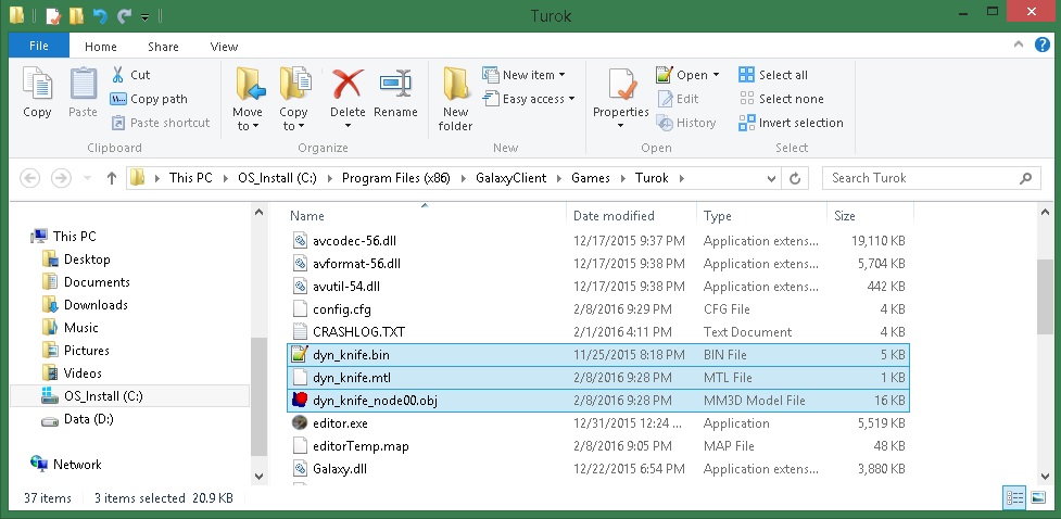 4.) Paste the copy of the .bin file directly into Turoks game directory.