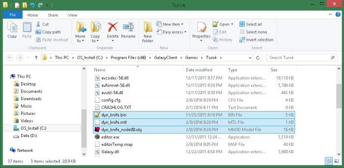 7.) Once you do this you can exit the game and in your Turok folder directory (steam or gog) you should have the file and models ready for view in your choice of software. I use blender and misfit 3d. They should be in your folder like this after the console command.