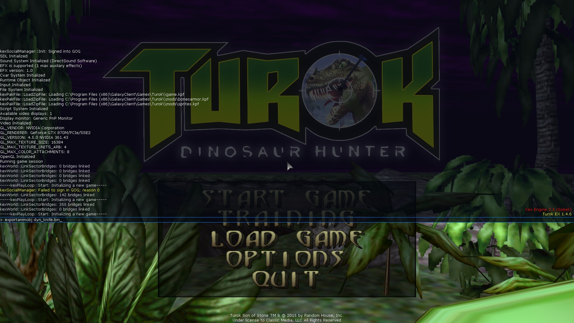 5.) Launch Turok and at the main menu open the console by pressing the ~ key.