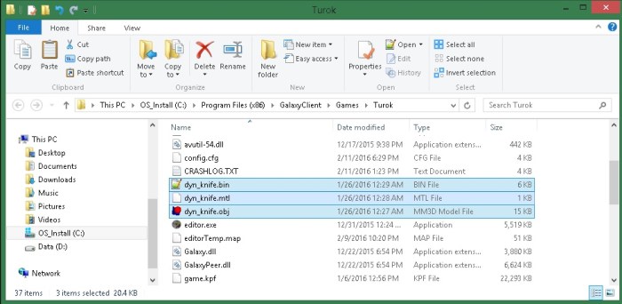 4.) Paste the copy of the .bin file directly into Turoks game directory.
