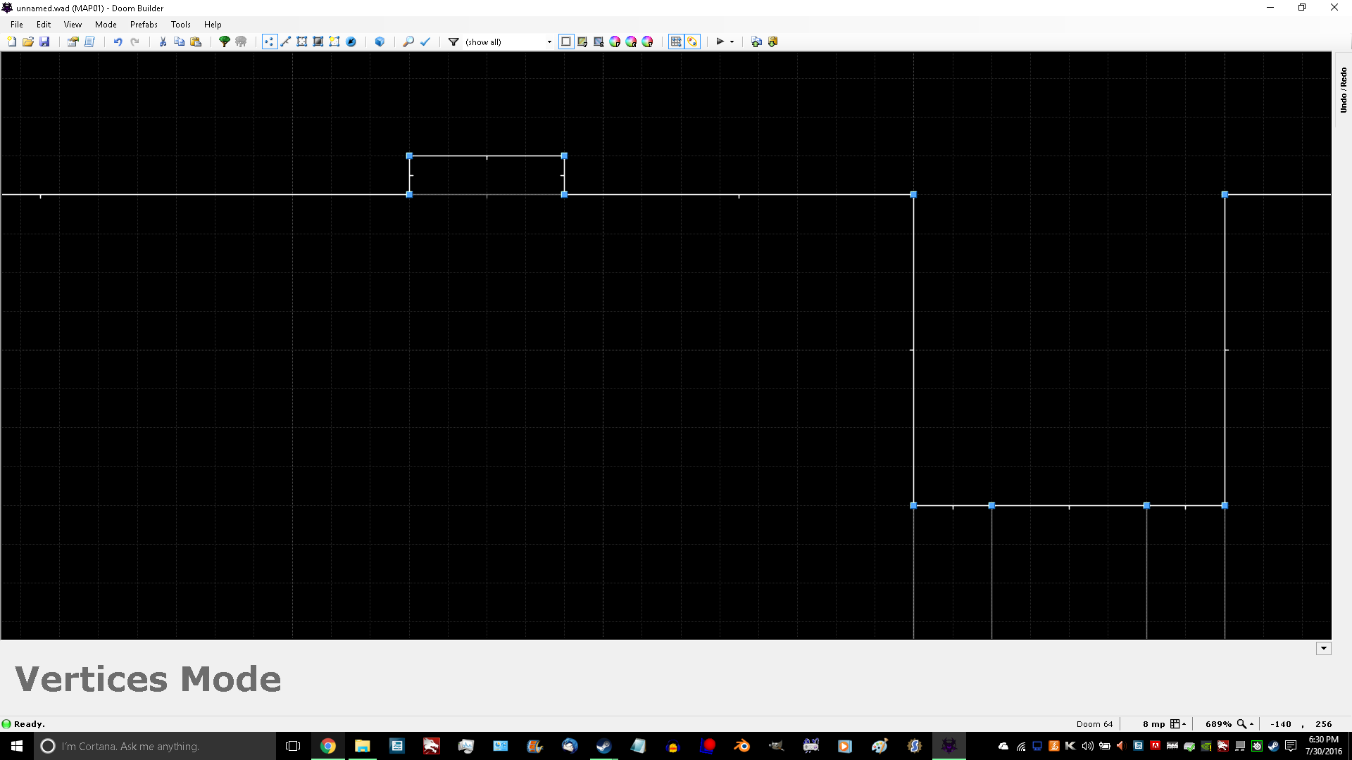 3.) Now that the textures are set, adjust the ceiling and floor height for this sector to match your switch size. Be sure to test the height of the switch so your player is looking at the switch and its the correct height for Doom guy.