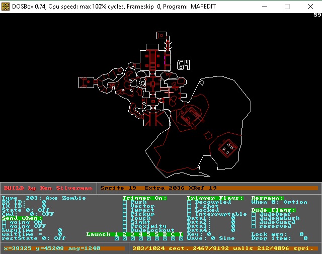 I started on a Blood map today with some motivation from Doomed. Its only the start of the map as I spent lot of time reading hotkeys and setting up test play and gathering some tools. I will share links to the tools I use soon. To make a Blood map was always one of my goals. So here we go the map has no name yet. Its going to feature some indoor and outdoors the layout is not done either hopeful to make big progress on this by Friday. Being so familiar with Duke Nukem 3D’s editor is bound to help.
