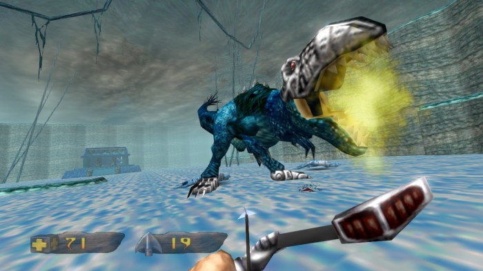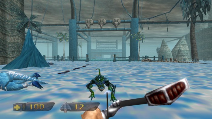 (I couldn’t work much on my mod the previous days) Created my own actor and gave it a specific script to be a pick up. Behemoth Programmer helped me make my pick up speed the player up for a certain amount of time (thanks very much). The actor I made is the Super Mario 64 star model! I also created a brand new lifeforce(treasure) pickup which is Turok’s head, that equals 1 life(100 treasures). Finished the maps sectors and gave the T-rex new breath fire! The map is almost ready to go but there’s little time left…