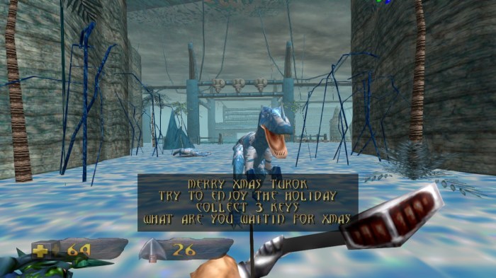 Out of the spur of the moment and inspiration from two Turok winter/xmas theme maps I decided to try and make a winter/xmas themed map. Its a bit late to start now! Time is ticking. And I must go pretty fast I started this today and will only have a few hours to work today. If I don’t finish I will release next year. If I do release then the mod will just be updated next year for more! Since that would give me real time to make proper progress.