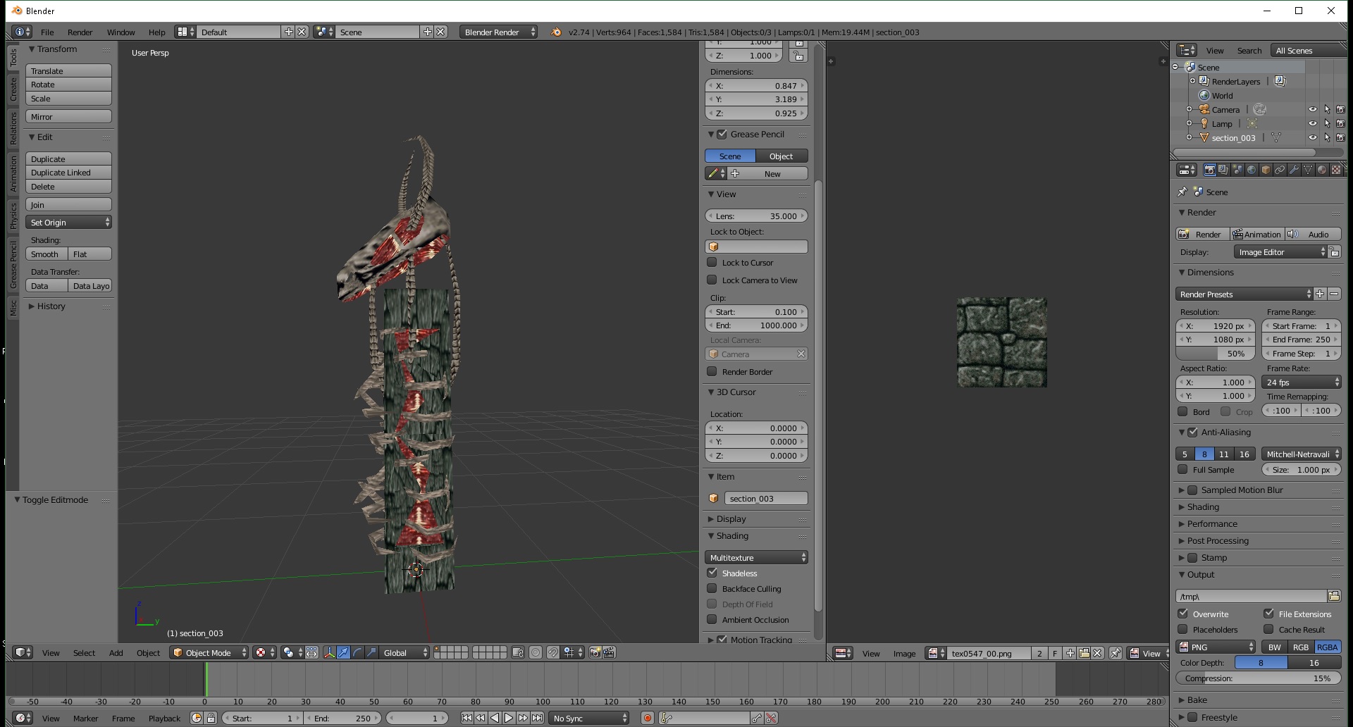 I decided to make a few models in blender using Turok 1 and Turok 2 textures. And even at times use actual pieces from the game (such as a skull etc) to add to my model to give them the connection but not all of them. Mostly I am just making pillars here first. I wanted to learn some more about models and make my own this year to start the year of differently.