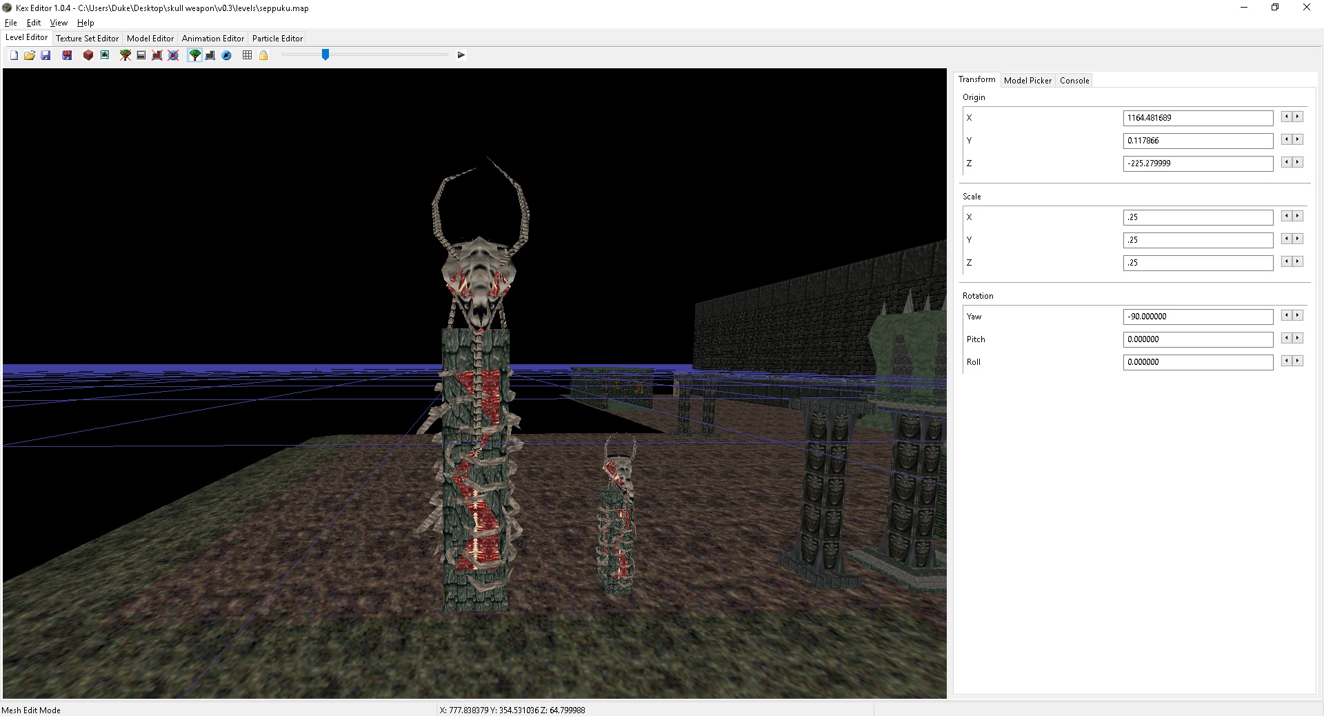 In this one I have added some Turok models into the mix. I have used the Trex and the Human skulls on top there obviously. I also used Turok 1 and Turok 2 textures in these. Which I think is the way to go! No there’s no Doom esque going on here lol.
